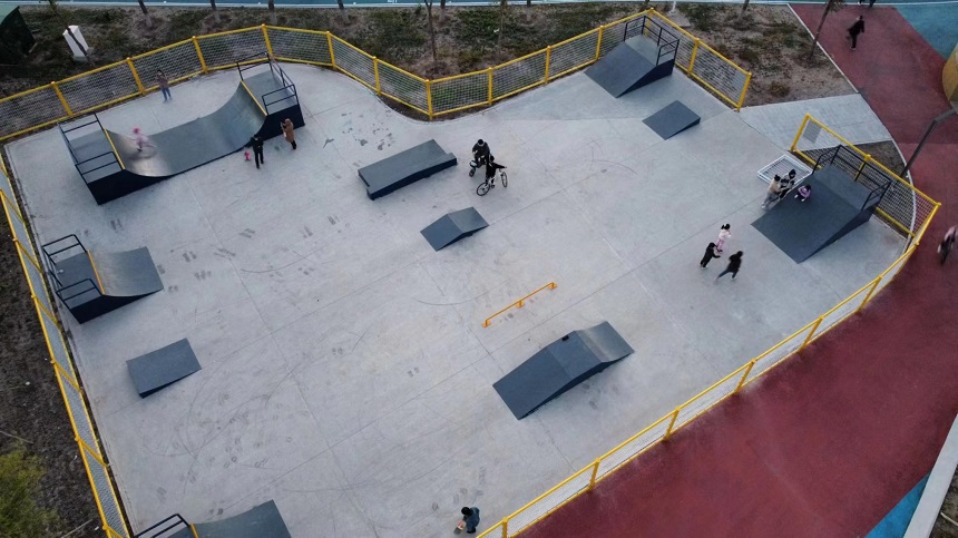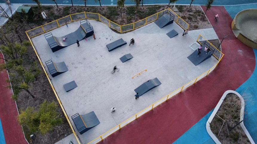 廣闊的滑板場地設計別具匠心,800多平面的街式場地區(qū)域、U型槽、小弧坡、小斜坡、雙斜坡、大小出發(fā)臺、大小拋出臺、跳箱、盒子、跳桿、坡跳臺各種都有。彎曲的曲線道、陡峭的坡道和各種令人眼花繚亂的障礙設施,處處挑戰(zhàn)滑手們的技藝和勇氣。無論是新手還是經驗豐富的滑板高手,都能在這里找到適合自己的挑戰(zhàn),一次又一次突破自我,感受成功的喜悅。